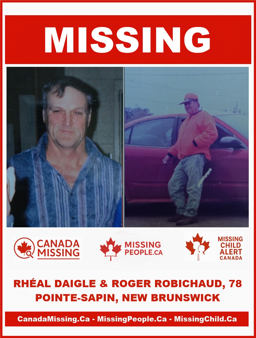 🚨 Missing Men in Pointe-Sapin, New Brunswick – Rhéal Daigle & Roger Robichaud, 78 – Last Seen October 22, 2025