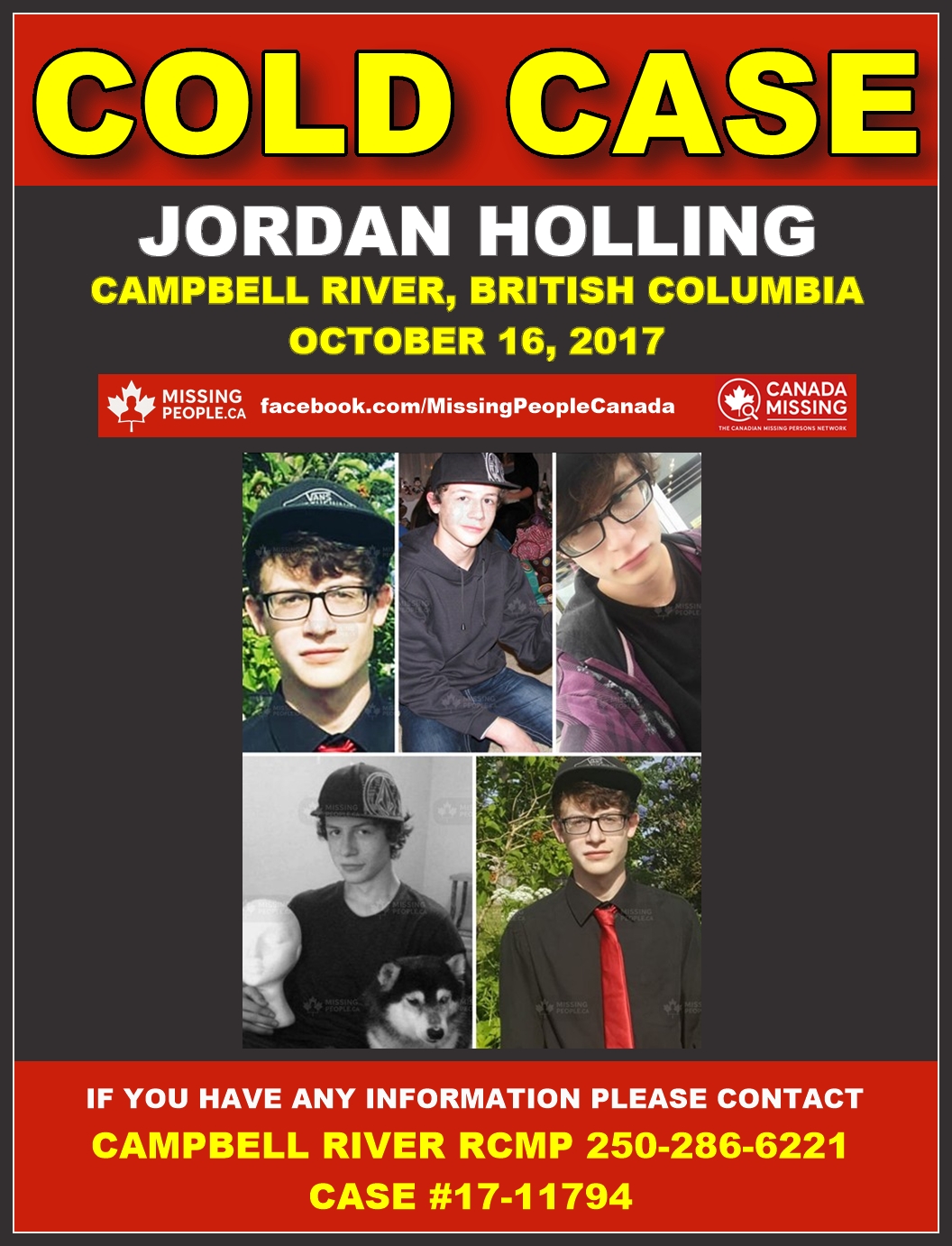COLD CASE: MISSING TEEN IN CAMPBELL RIVER, BRITISH COLUMBIA – JORDAN HOLLING, 17 – LAST SEEN OCTOBER 16, 2017