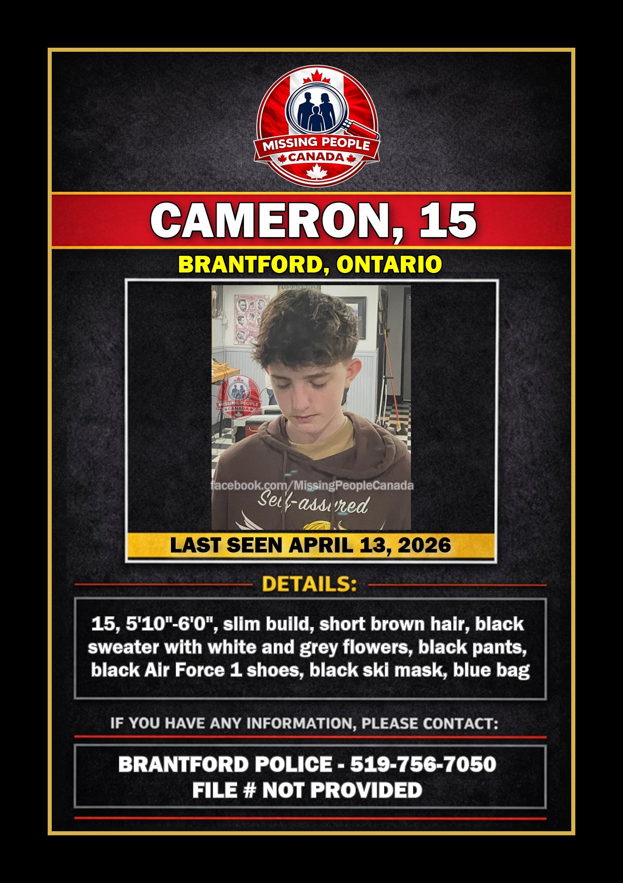 🚨 MISSING BOY IN BRANTFORD, ONTARIO – CAMERON, 15 – LAST SEEN APRIL 13, 2026