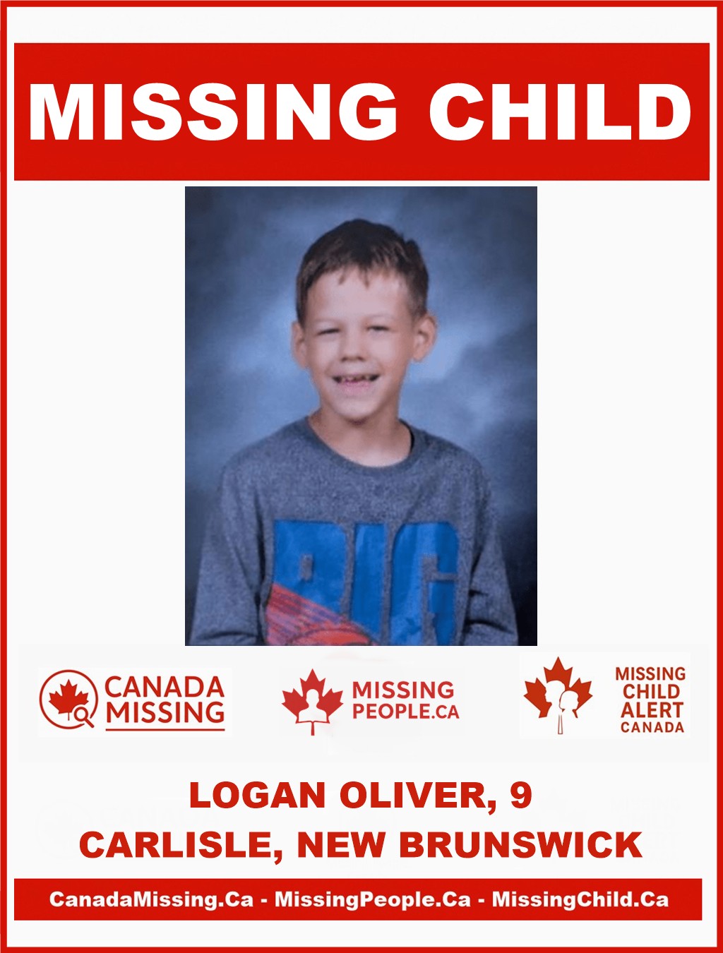 The Western Valley Region RCMP is asking for the public’s assistance in locating 9-year-old Logan Oliver, who was last seen on October 23, 2025, at approximately 12:30 p.m. near a residence in the 6700 block of Route 104 in Carlisle, New Brunswick.