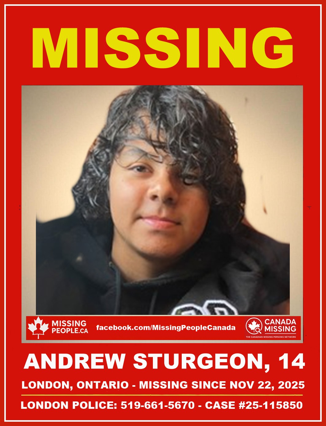 Missing Boy in London, Ontario – Andrew Sturgeon, 14 – Last Seen November 22, 2025