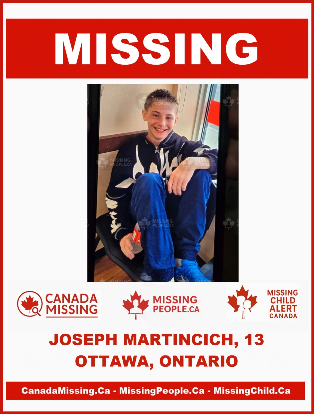 The Ottawa Police Service is asking for the public’s help in locating 13-year-old Joseph Martincich.