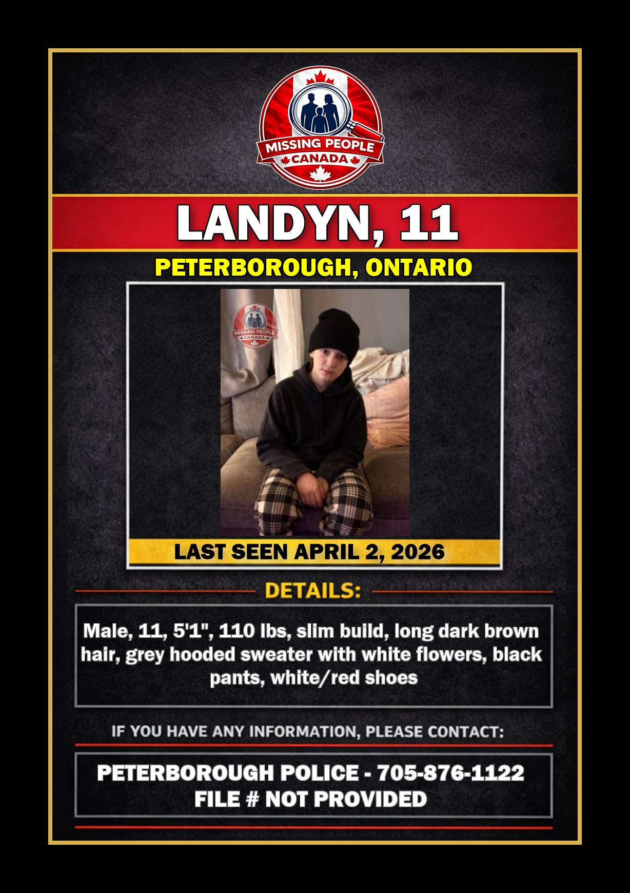 🚨 MISSING MALE IN PETERBOROUGH, ONTARIO – LANDYN, 11 – LAST SEEN APRIL 2, 2026