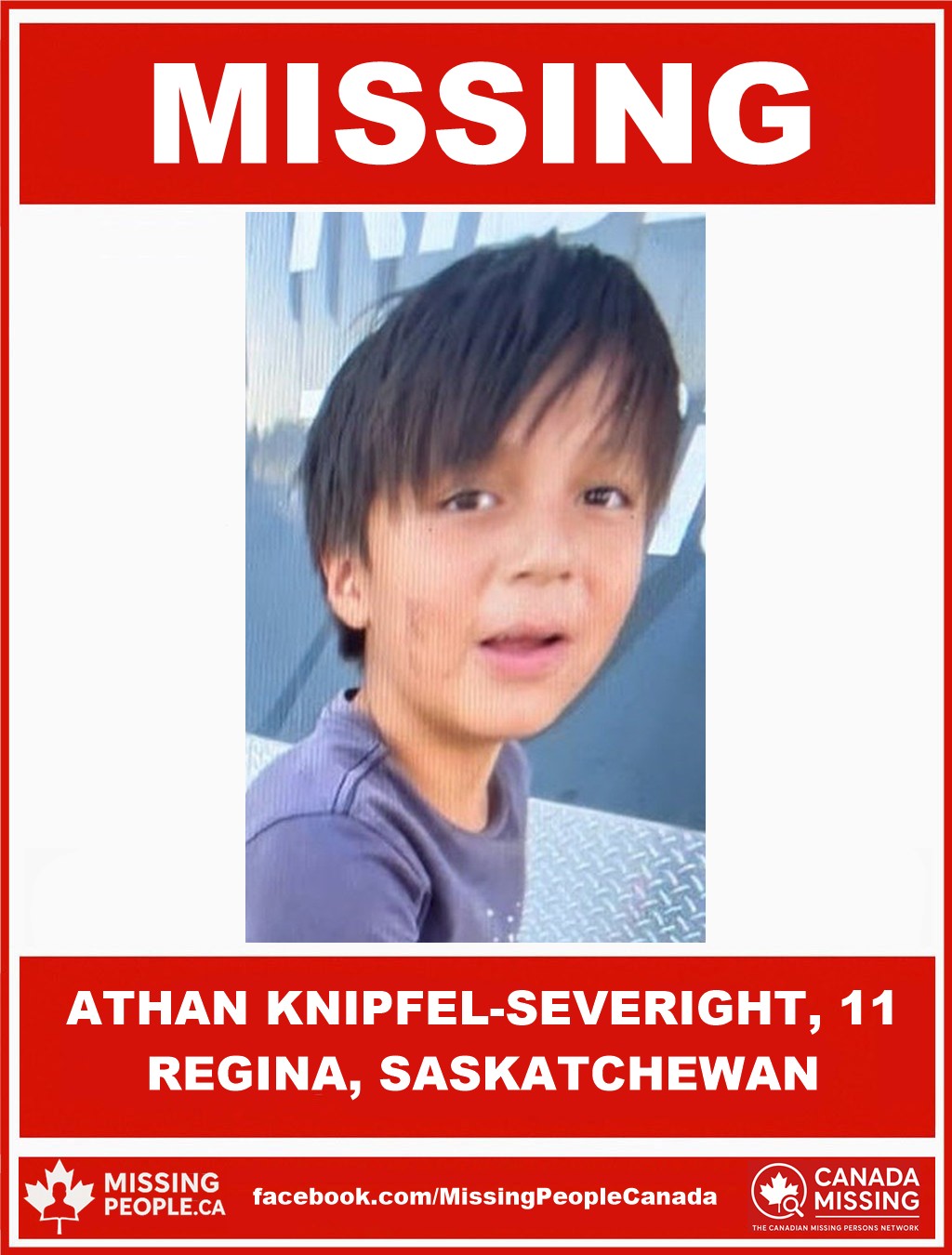 The Regina Police Service is asking for the public’s assistance in locating 11-year-old Athan Knipfel-Severight. He was last seen around 3:00 p.m. on October 30, 2025, in the 1300 block of Robinson Street in Regina, Saskatchewan.