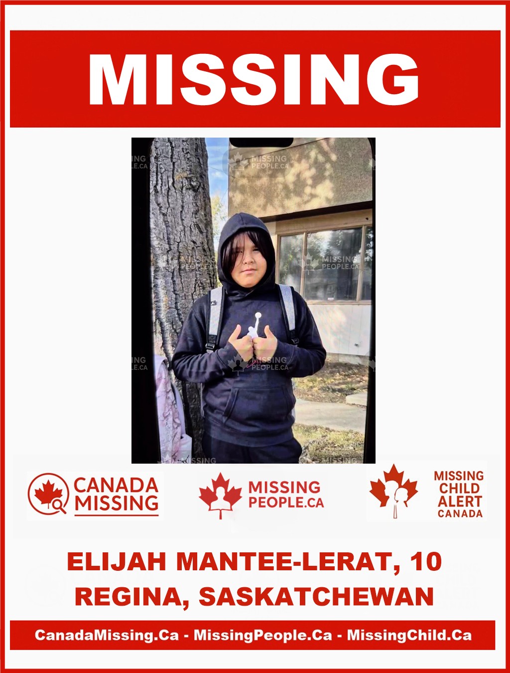The Regina Police Service is requesting the public’s assistance in locating Elijah Mantee-Lerat, a 10-year-old boy who has been reported missing.