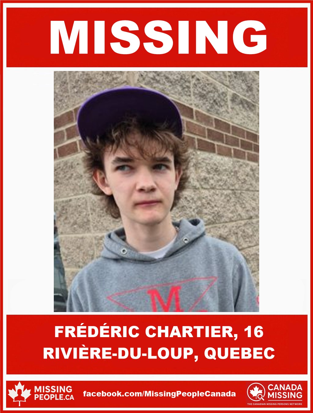 The Sûreté du Québec (SQ) is requesting the public’s assistance in locating 16-year-old Frédéric Chartier, from Rivière-du-Loup, Quebec.