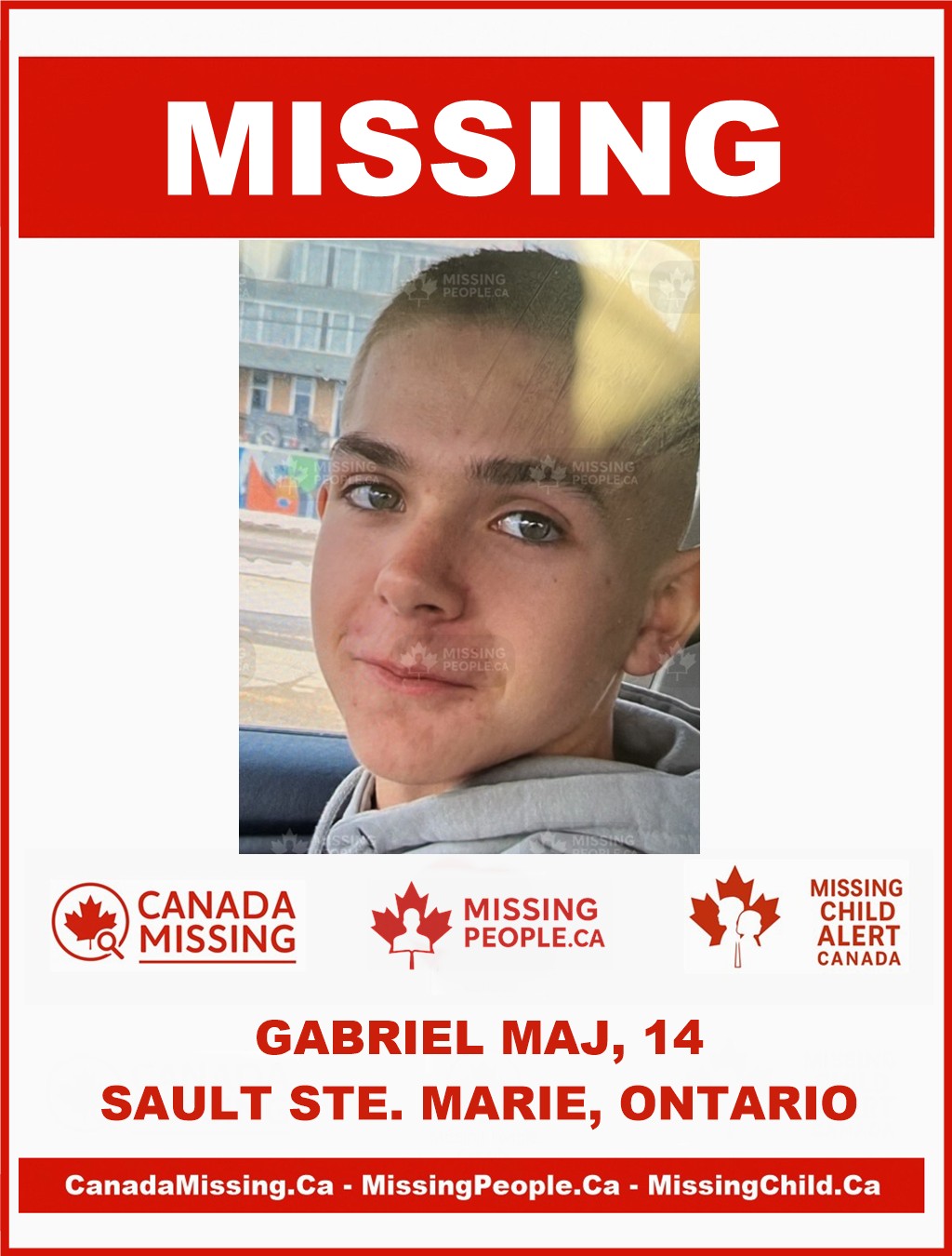 The Sault Ste. Marie Police Service is requesting public assistance to locate 14-year-old Gabriel Maj, who was last seen on October 15, 2025, on Cathcart Street. Police believe he may be in the Jamestown area of the city.