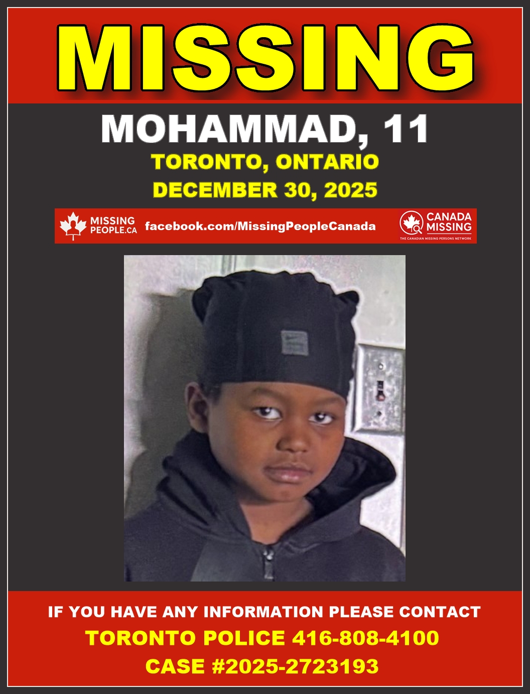 🚨 Missing child in Toronto, Ontario – Mohammad, 11 – Last Seen December 30 2025