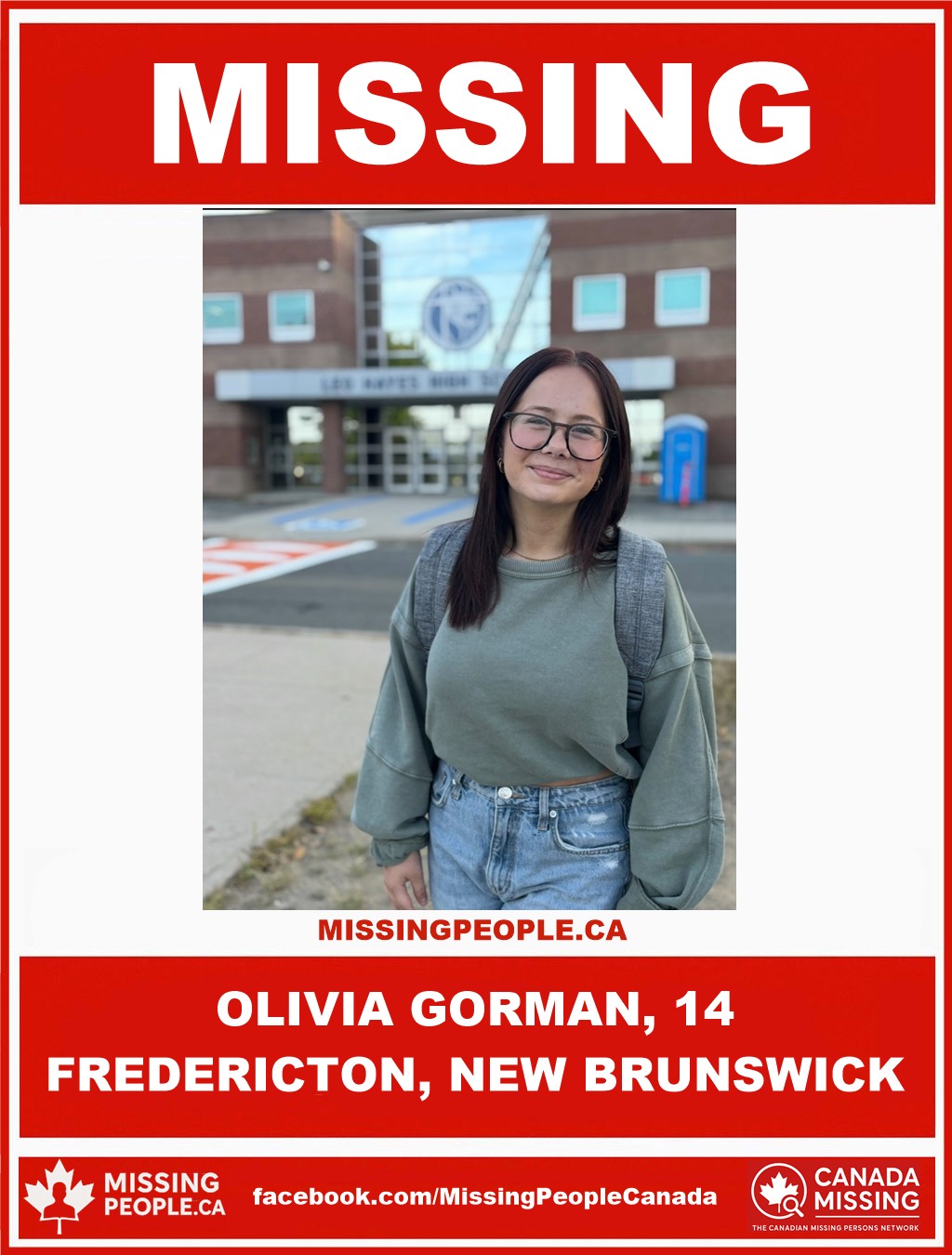 The Fredericton Police Force is requesting the public’s assistance in locating Olivia Gorman, a 14-year-old girl from Fredericton.