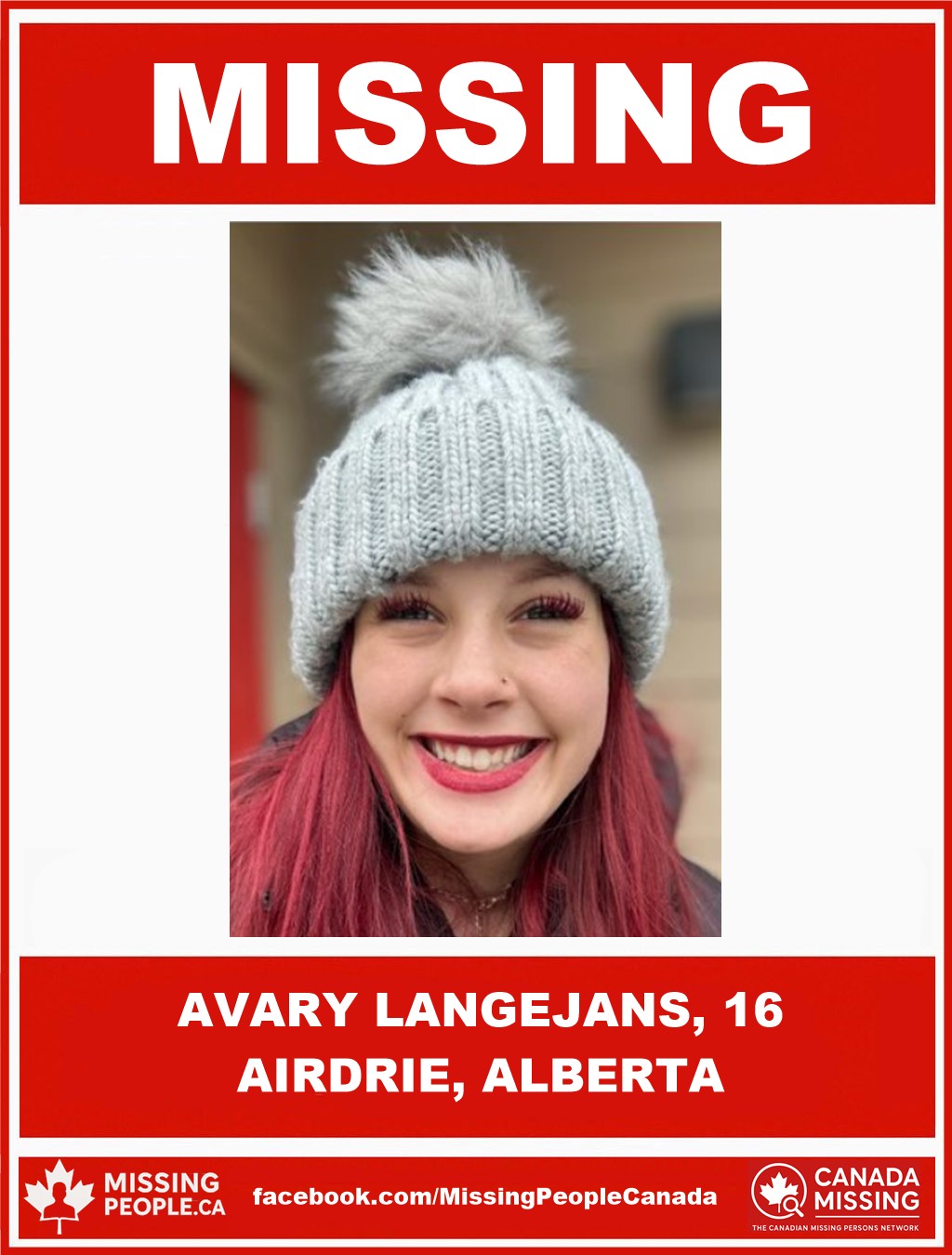 The Airdrie RCMP is seeking the public’s assistance in locating 16-year-old Avary Langejans, who was last seen on Tuesday, November 4, 2025, in Airdrie, Alberta.
