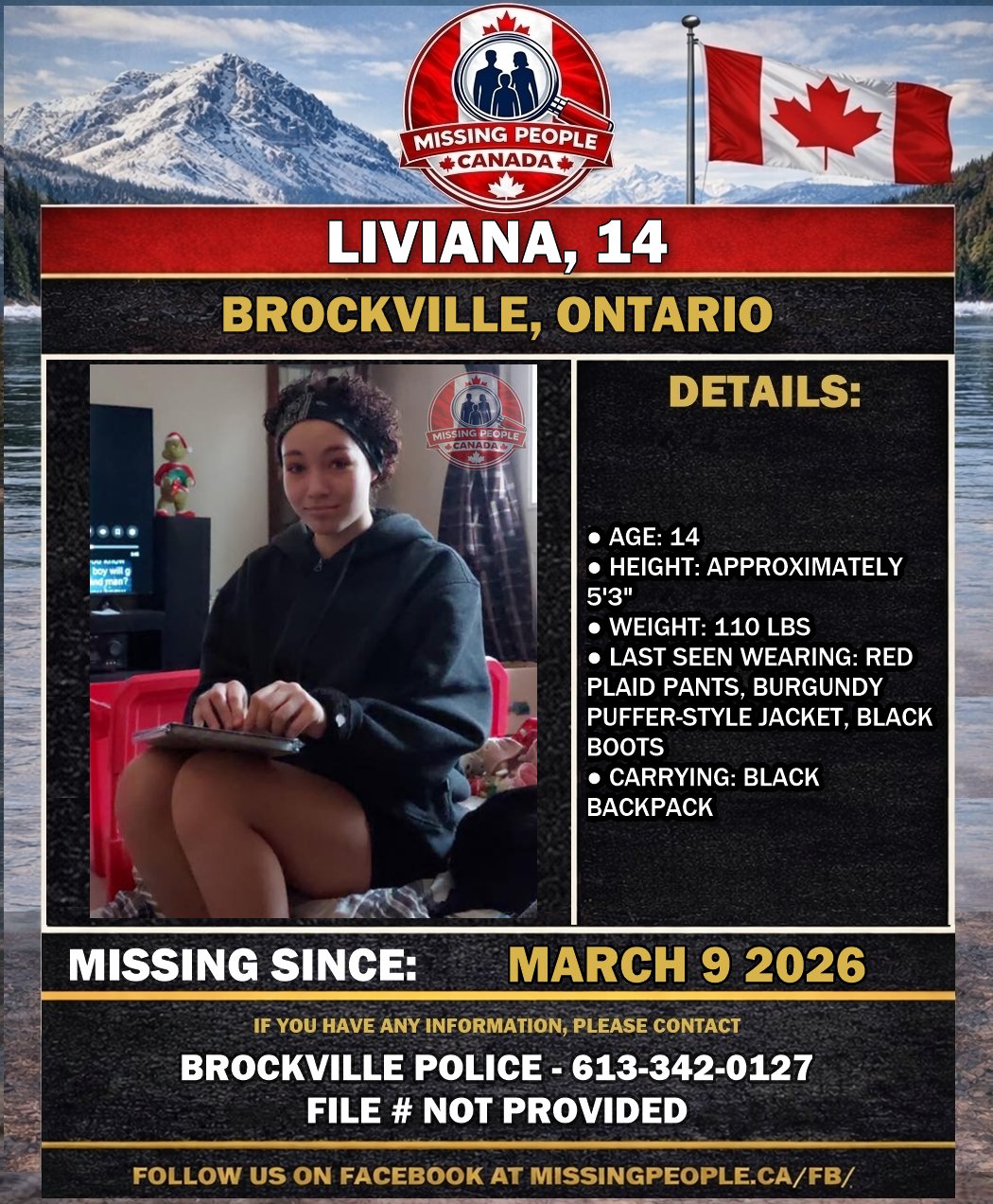 🚨 Missing Girl in Brockville, Ontario – Liviana, 14 – Last Seen March 9 2026