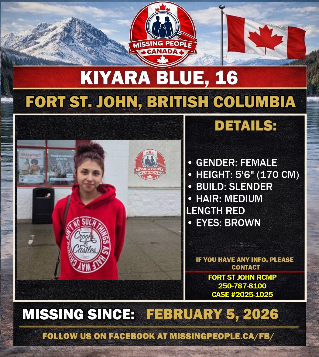 If you have any information about Kiyara Blue or where she might be, please contact Fort St. John RCMP at 250-787-8100.