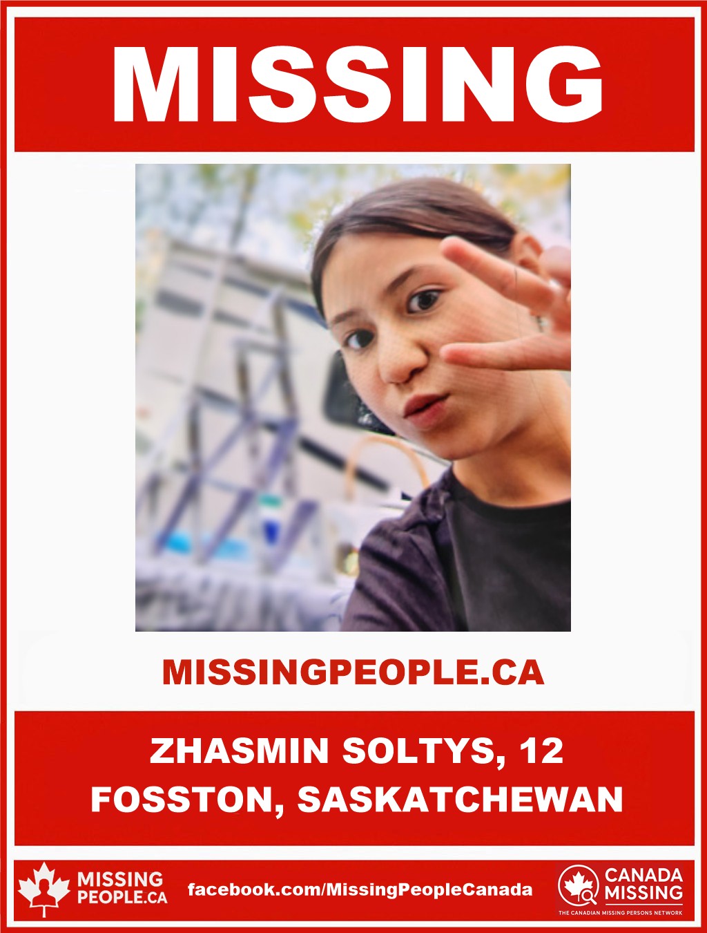 🚨 Missing Girl in Fosston, Saskatchewan – Zhasmin Soltys, 12 – Last Seen November 10, 2025