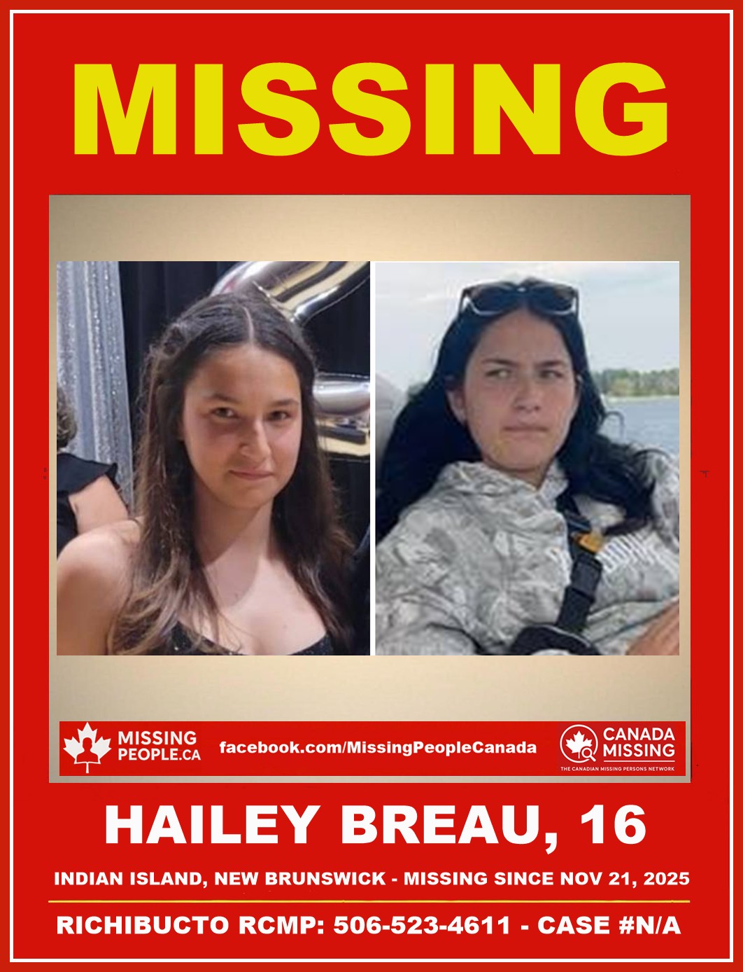 Missing Girl in Indian Island, New Brunswick – Hailey Breau, 16 – Last Seen November 21, 2025