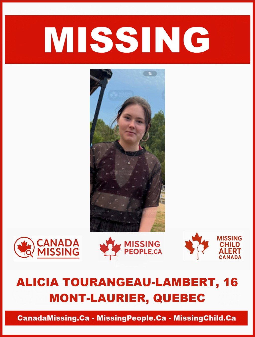 🚨 MISSING GIRL IN MONT-LAURIER, QUEBEC – ALICIA TOURANGEAU-LAMBERT, 16 – LAST SEEN OCTOBER 6, 2025