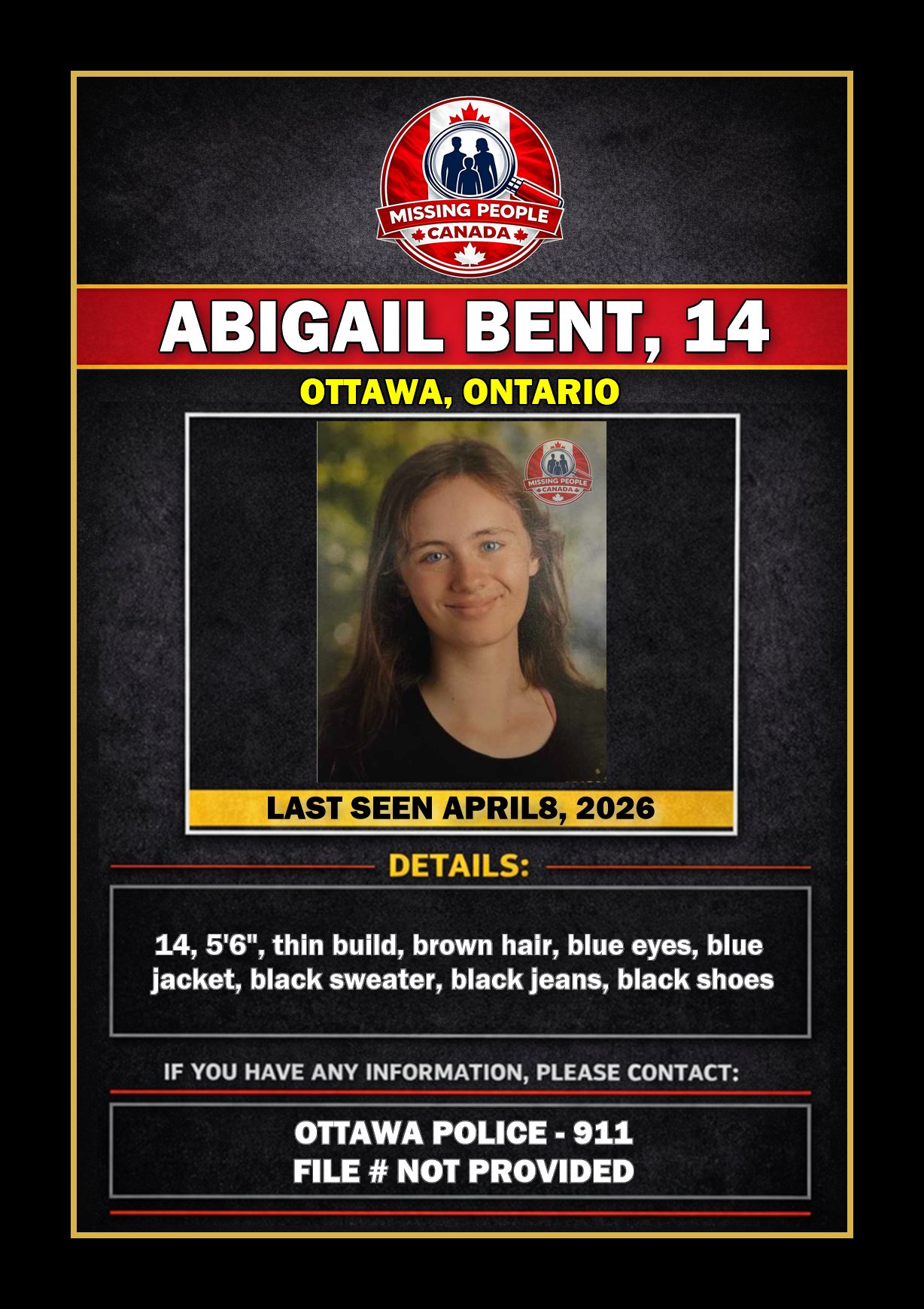 🚨 MISSING GIRL IN OTTAWA, ONTARIO – ABIGAIL BENT, 14 – LAST SEEN APRIL 8, 2026