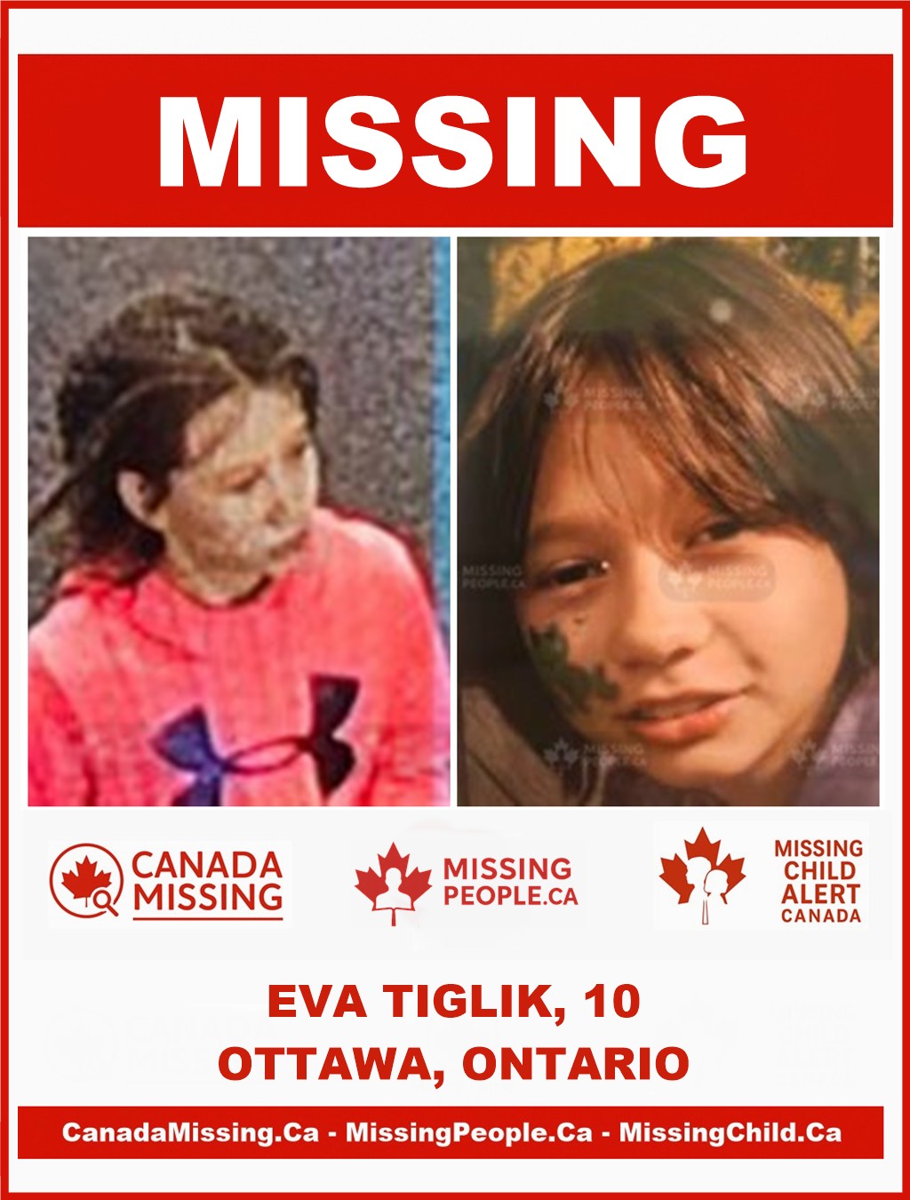 Eva Tiglik, 10, was last seen earlier this evening on Thursday, October 2, 2025, leaving St. Laurent Shopping Centre in Ottawa.