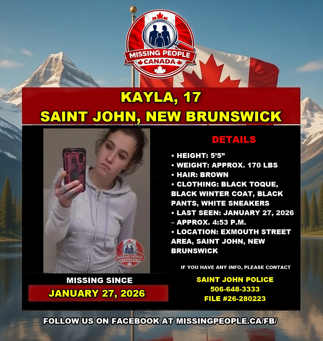🚨 Missing Girl in Saint John, New Brunswick – Kayla, 17 – Last Seen January 27, 2026