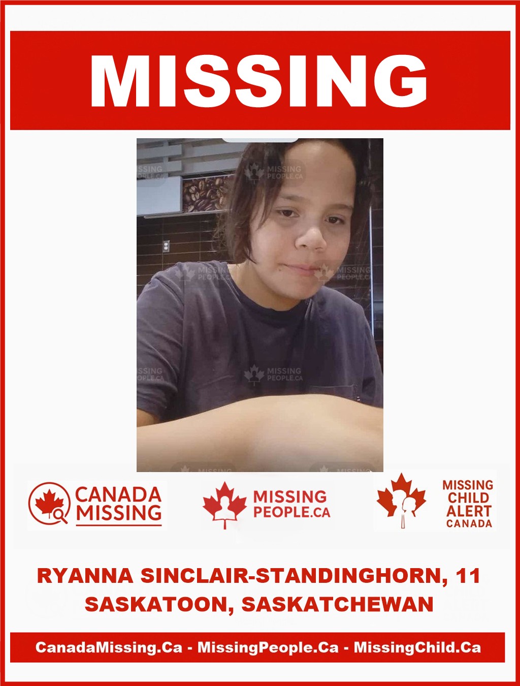 Anyone with information on the whereabouts of Ryanna Sinclair-Standinghorn is asked to contact the Saskatoon Police Service at 306-975-8300 or, in an emergency, call 9-1-1.