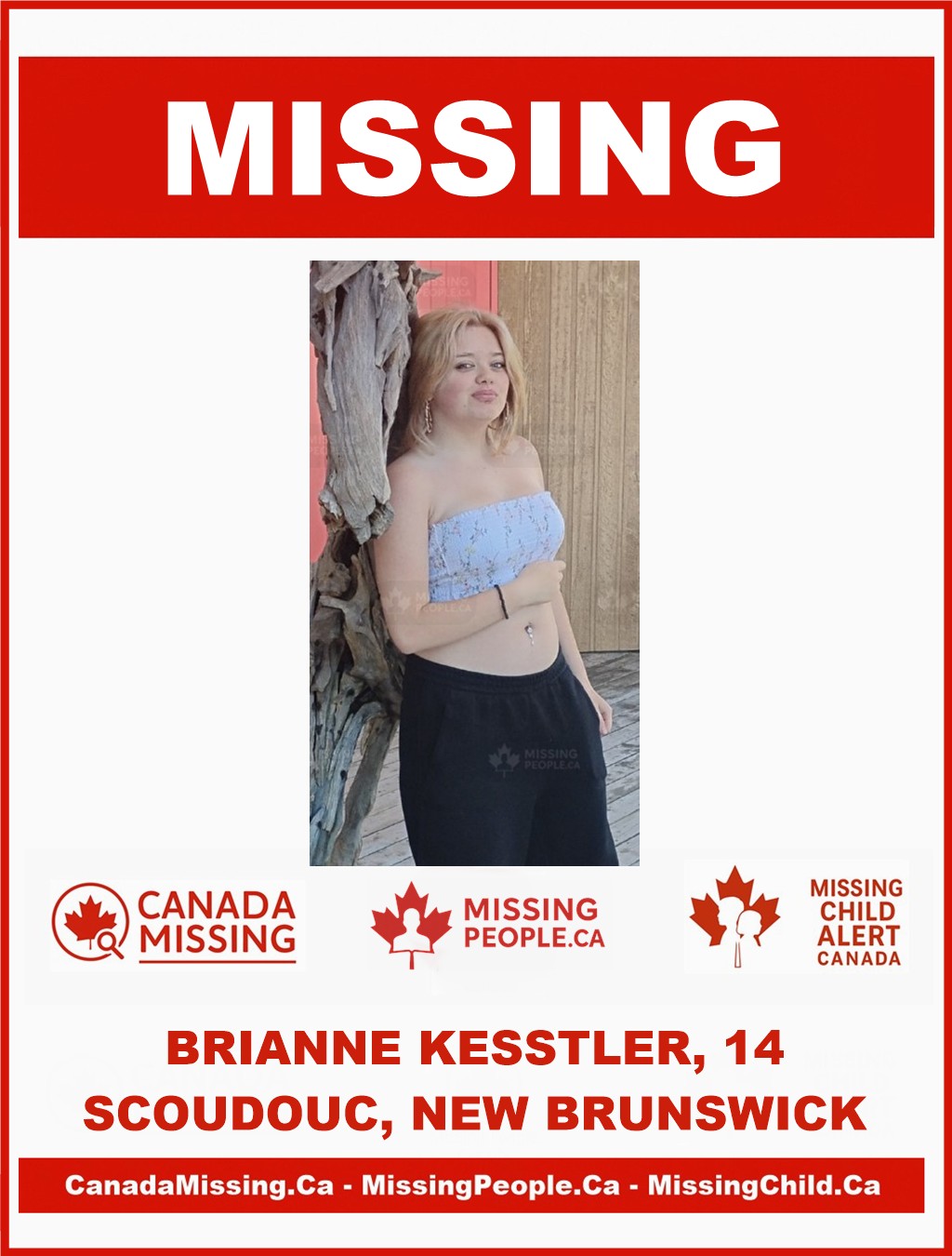 The Shediac RCMP is requesting the public’s assistance in locating 14-year-old Brianne Kesstler from Scoudouc, New Brunswick. She was last seen on October 15, 2025, on Parker Road, and was reported missing the same day.