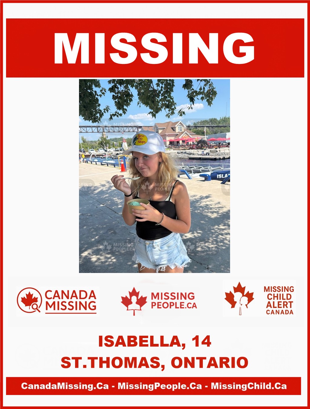 The St. Thomas Police Service (STPS) is requesting the public’s assistance in locating 14-year-old Isabella, who has been reported missing.