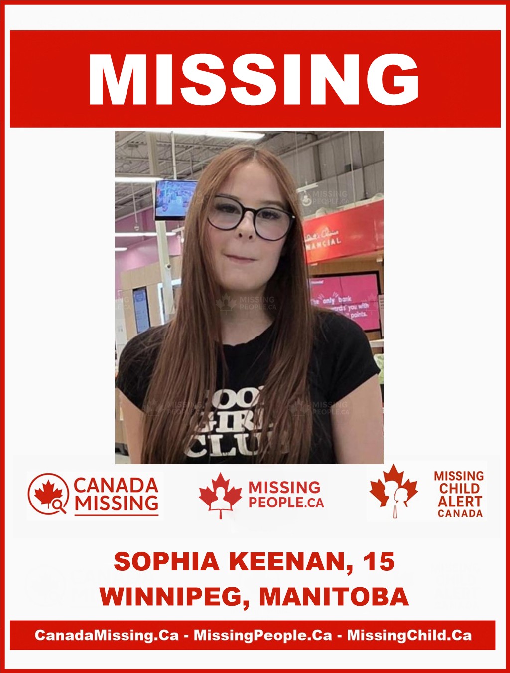 The Winnipeg Police Service Missing Persons Unit is asking for the public’s assistance in locating 15-year-old Sophia Keenan, who was last seen in the Transcona area of Winnipeg on October 3, 2025.