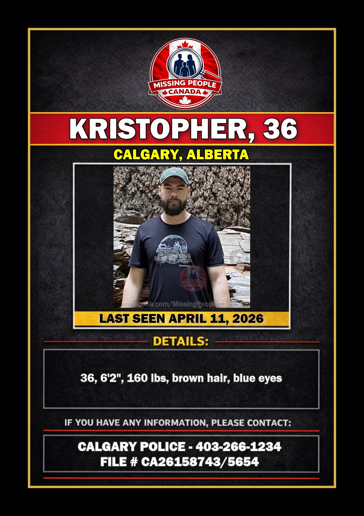 🚨 MISSING MAN IN CALGARY, ALBERTA – KRISTOPHER, 36 – LAST SEEN APRIL 11, 2026
