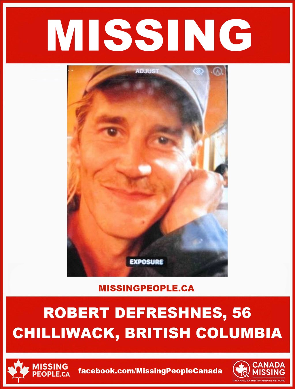 Chilliwack RCMP is requesting the public’s assistance in locating Robert DeFreshnes, a 56-year-old man who has been reported missing.
