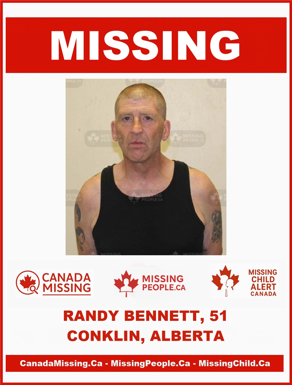 The Wood Buffalo RCMP is asking for the public’s help to locate Randy Bennett, a 51-year-old man from Conklin, Alberta, who has been reported missing.