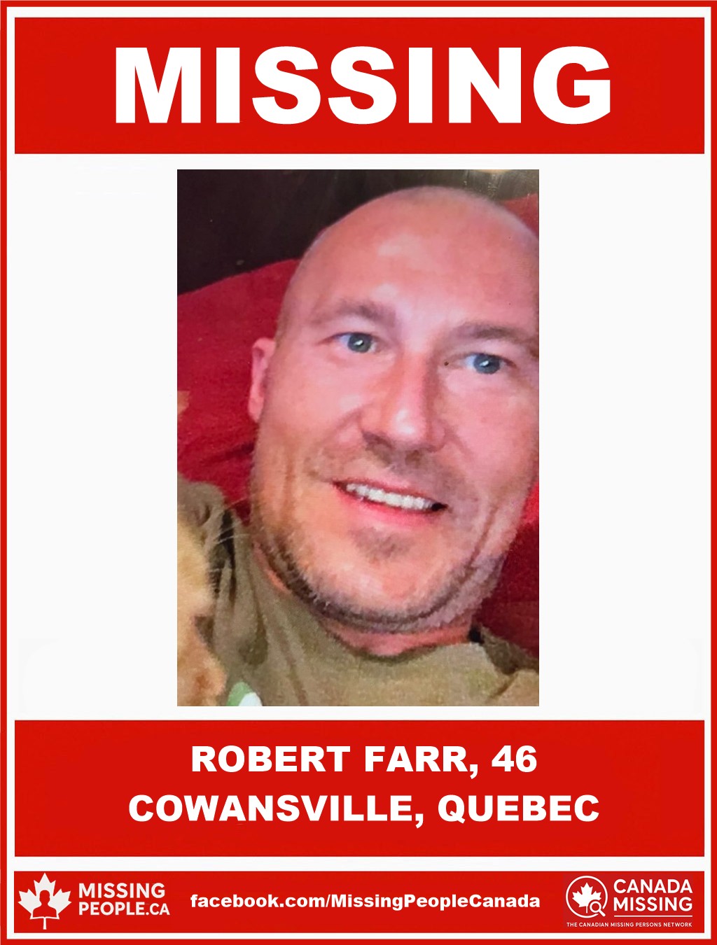 The Sûreté du Québec (SQ) is requesting the public’s assistance in locating 46-year-old Robert Farr, from Cowansville, Quebec.