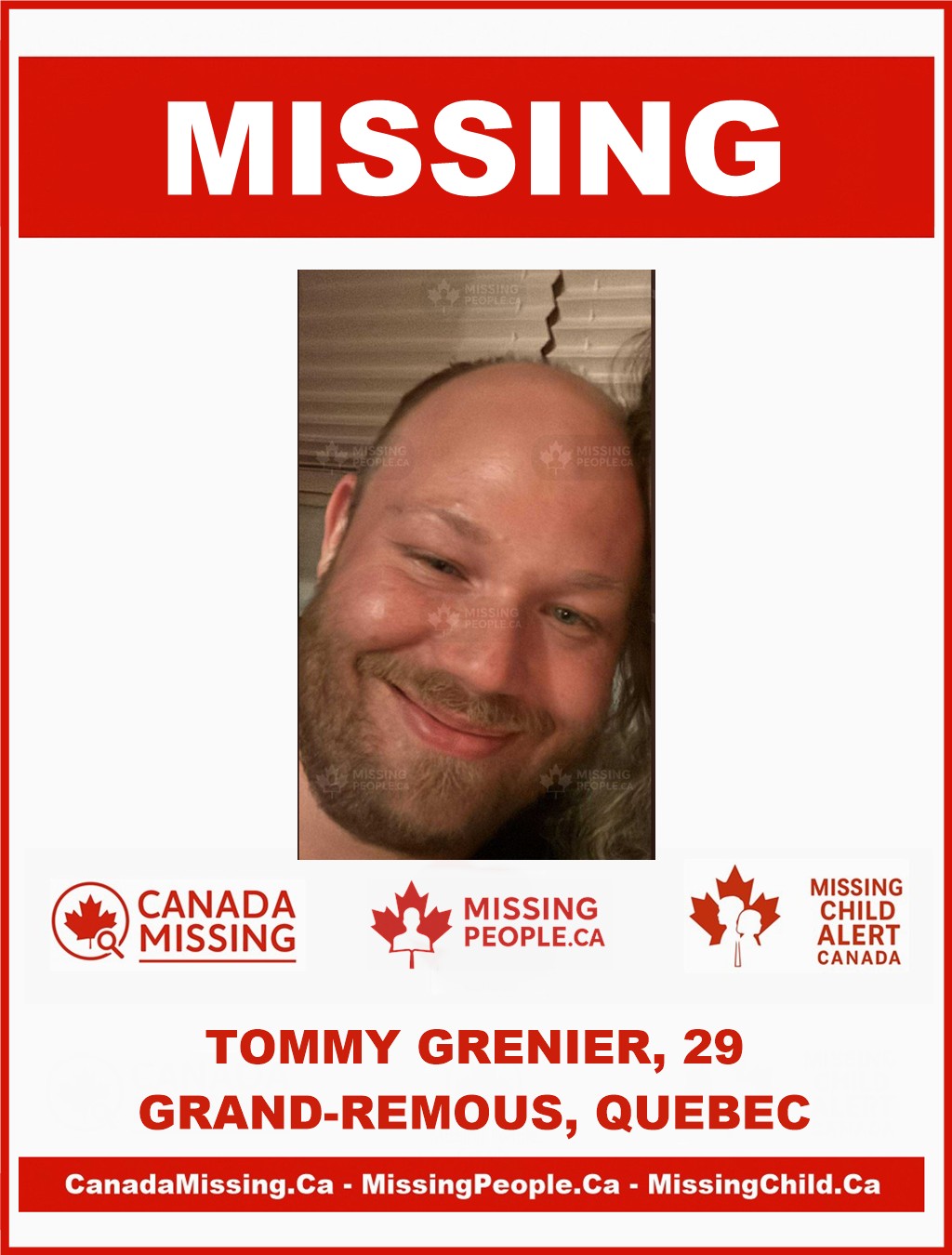 Anyone who has seen Tommy Grenier or has information about his whereabouts is asked to contact 911 immediately. Information can also be shared confidentially with the Sûreté du Québec Criminal Information Centre at 1-800-659-4264.