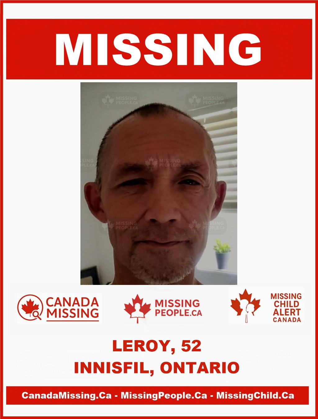 The South Simcoe Police Service is seeking the public’s assistance in locating 52-year-old Leroy, who was last seen on September 29, 2025, in the area of Hastings Avenue in Innisfil. Police believe he may now be in the Barrie area.
