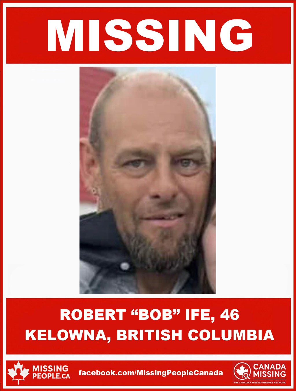 🚨 Missing Man in Kelowna, British Columbia – Robert “Bob” Ife, 46 – Last Communication August 2025