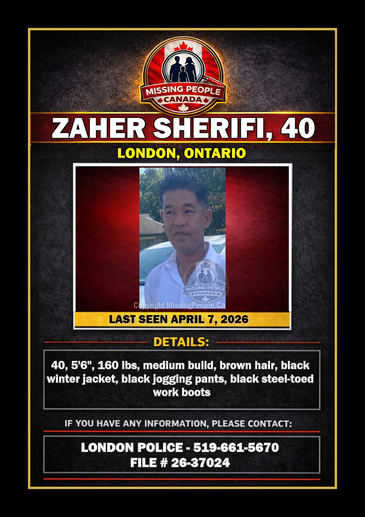 🚨 MISSING MAN IN LONDON, ONTARIO – ZAHER SHERIFI, 40 – LAST SEEN APRIL 7, 2026