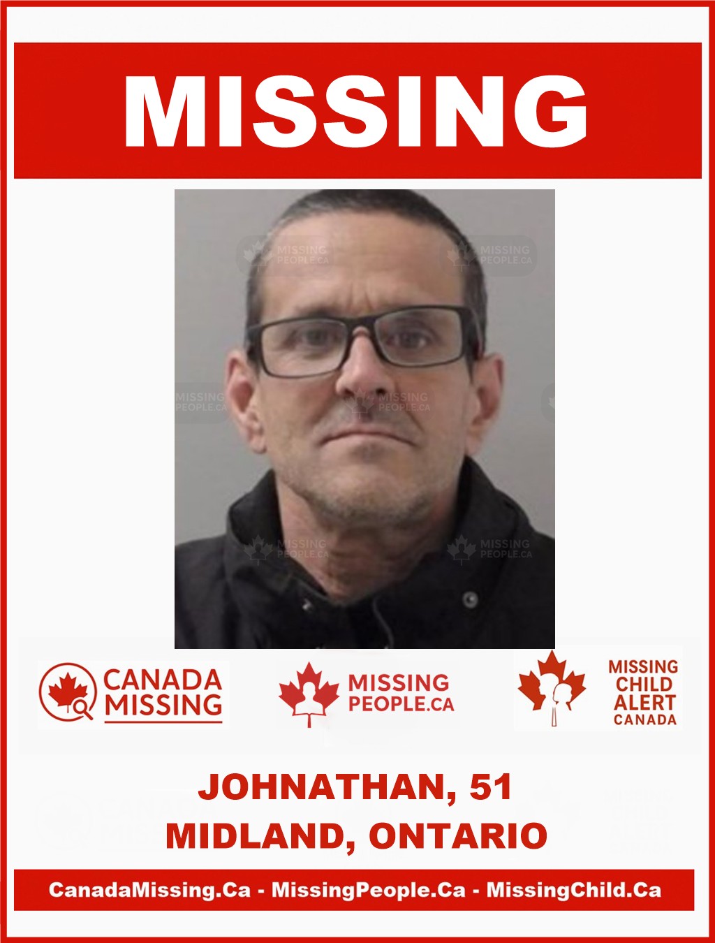 The Southern Georgian Bay OPP is seeking the public’s assistance in locating 51-year-old Johnathan, who has been reported missing from the Midland area.