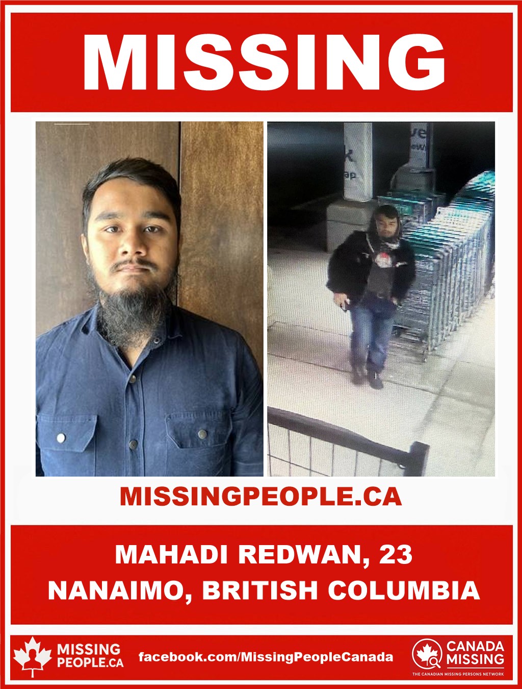 The Nanaimo RCMP is requesting the public’s assistance in locating 23-year-old Mahadi Redwan (File #2025-35331).