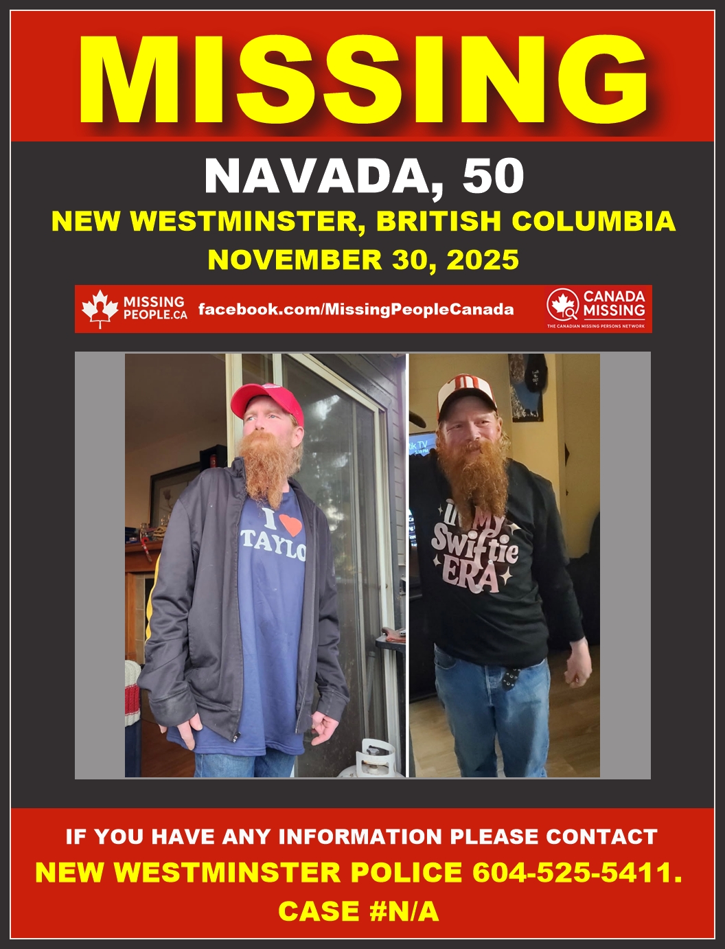 If you have any information about Navada’s location, please call New Westminster Police Department at 604-525-5411. Anonymous tips can be submitted to Crime Stoppers at 1-800-222-8477.
