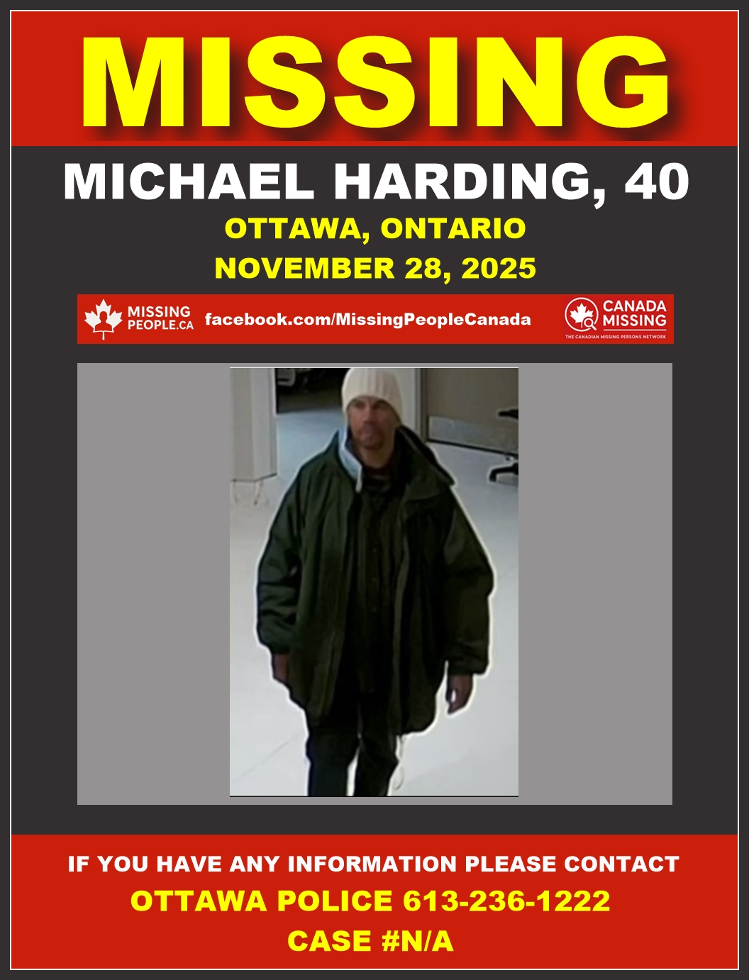 🚨 Missing Man in Ottawa, Ontario – Michael Harding, 40 – Last Seen November 28 2025