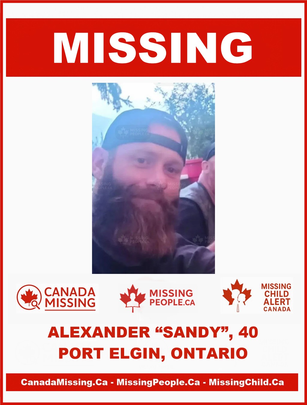 The South Bruce OPP is requesting the public’s assistance in locating Alexander “Sandy”, a 40-year-old man missing from the Port Elgin area.