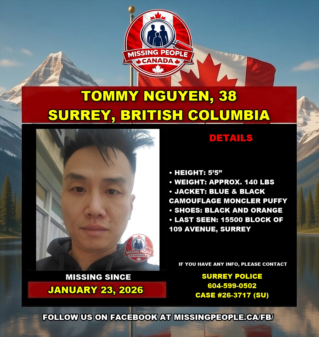 🚨 Missing man in Surrey, British Columbia – Tommy Nguyen, 38 – Last Seen January 23 2026