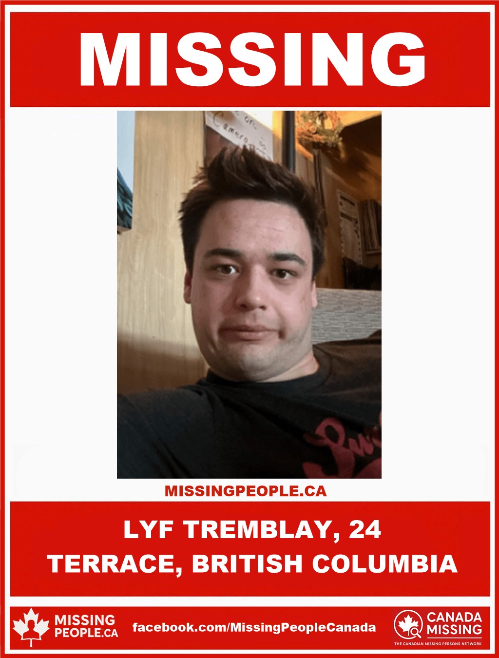The Terrace RCMP is investigating the disappearance of Lyf Tremblay, a 24-year-old man from Terrace.