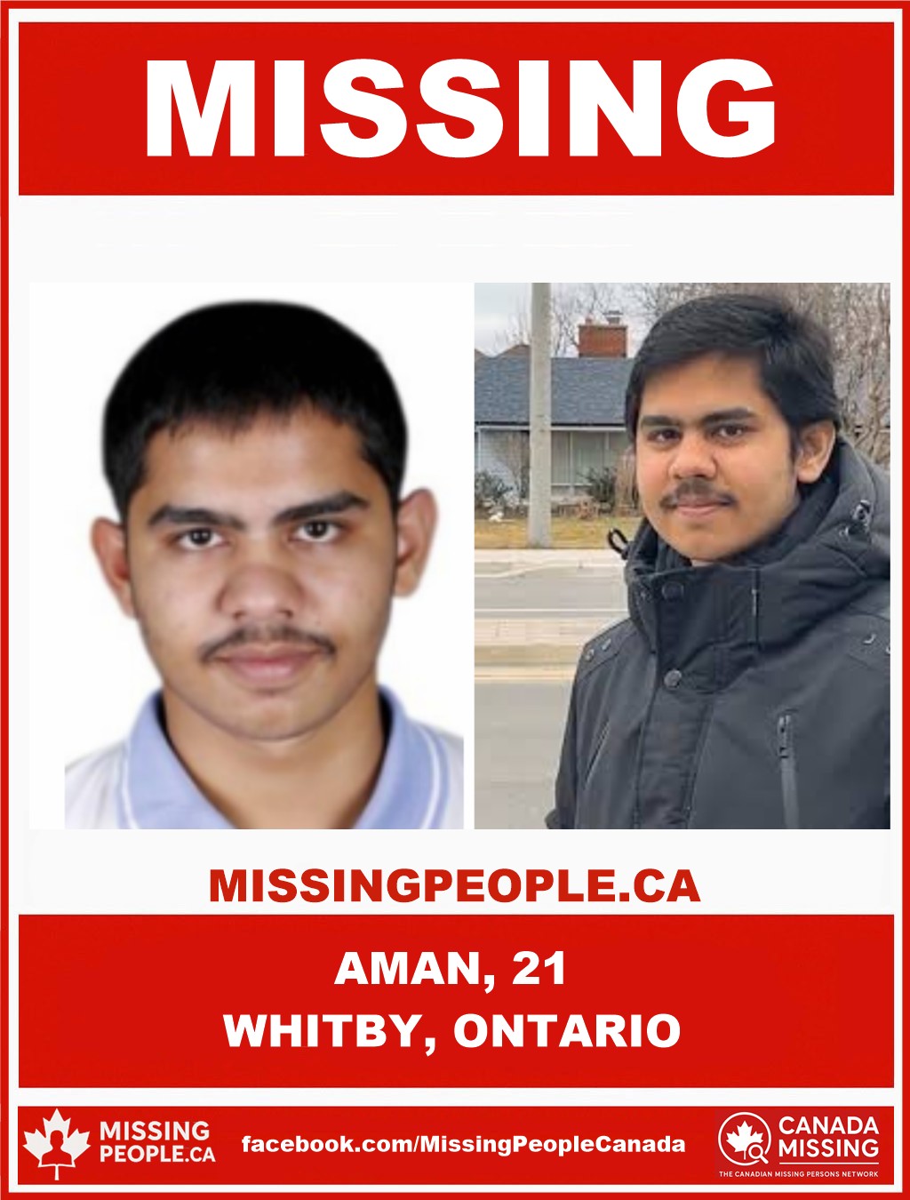 The Durham Regional Police Service is seeking the public’s assistance in locating Aman, a 21-year-old man from Whitby, Ontario, who was last heard from on Monday, September 29, 2025.