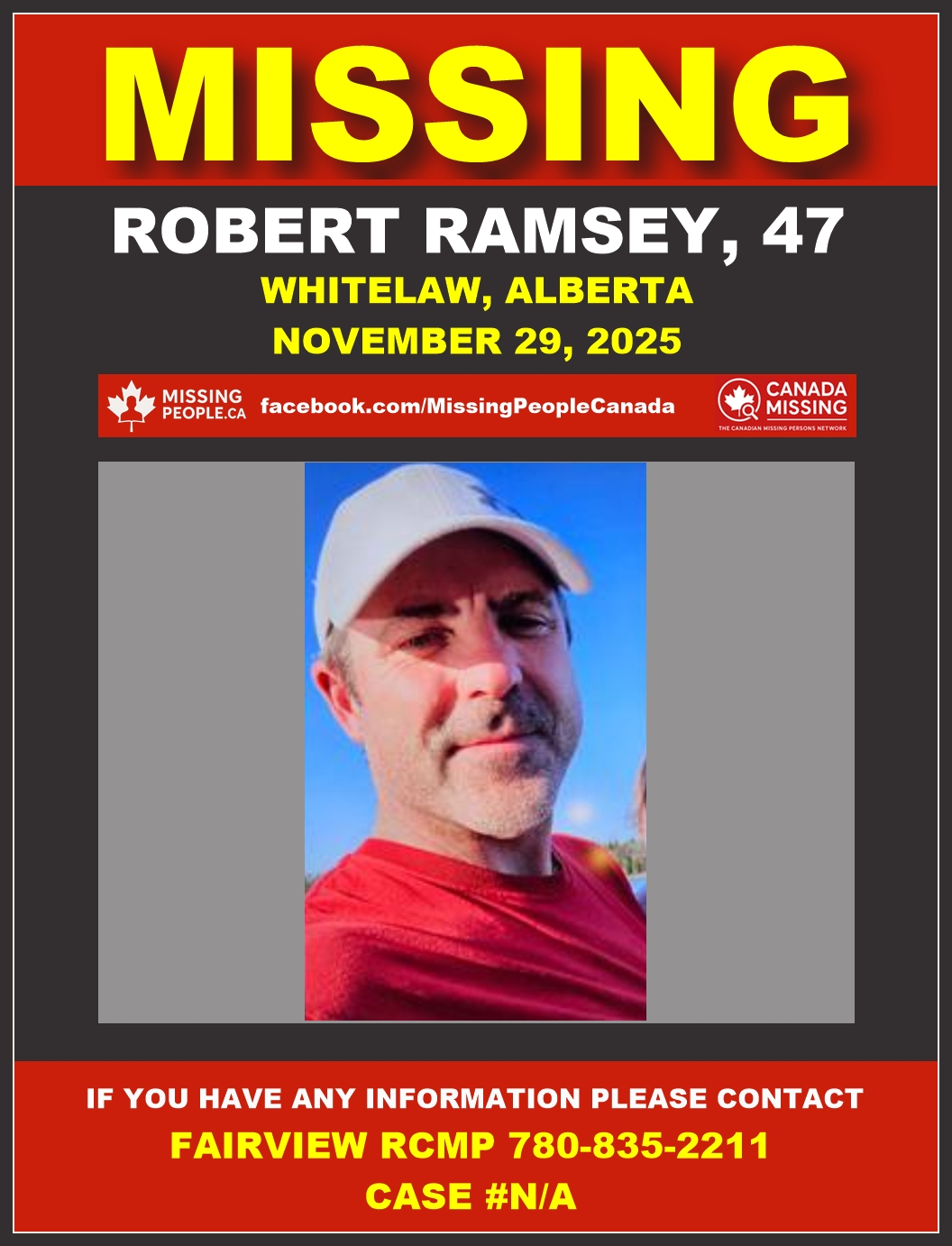 🚨 Missing Man in Whitelaw, Alberta – Robert Ramsey, 47 – Last Seen November 29 2025