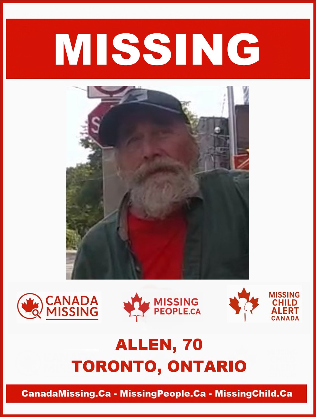 The Toronto Police Service is requesting the public’s assistance in locating Allen, a 70-year-old individual who has been reported missing. Allen was last seen on Friday, October 10, 2025, in the area of Dundas Street East and George Street.