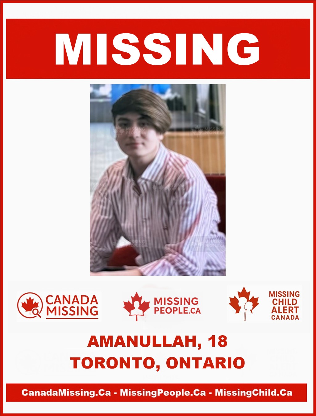 The Toronto Police Service is requesting the public’s assistance locating 18-year-old Amanullah, who was last seen on Wednesday, October 8, 2025, at approximately 10:58 p.m. in the Yonge Street and Gerrard Street East area.