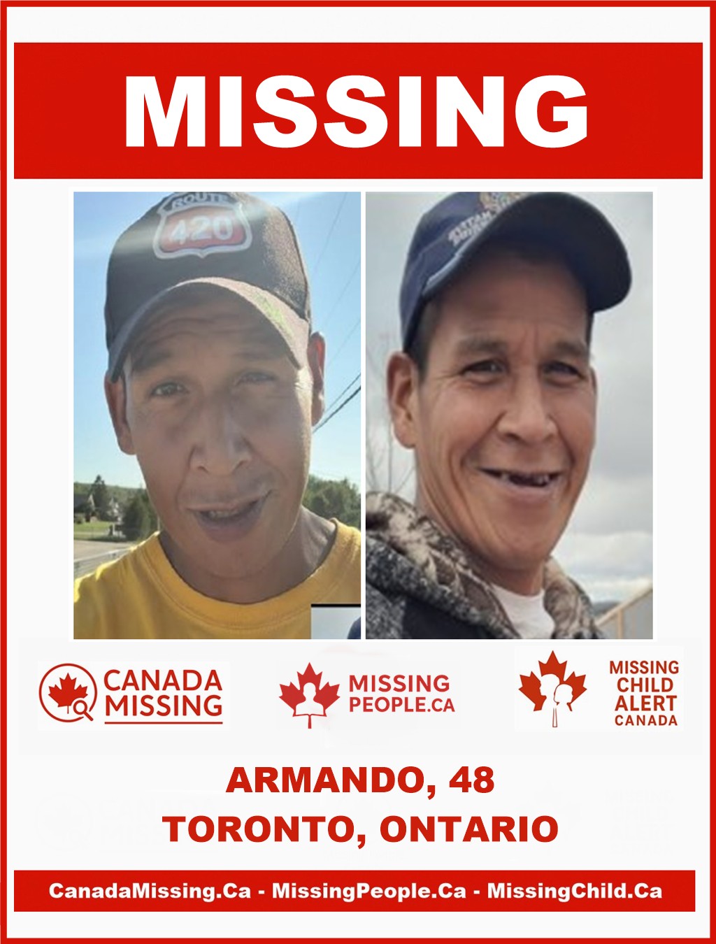 The Toronto Police Service is requesting the public’s assistance in locating Armando, 48.