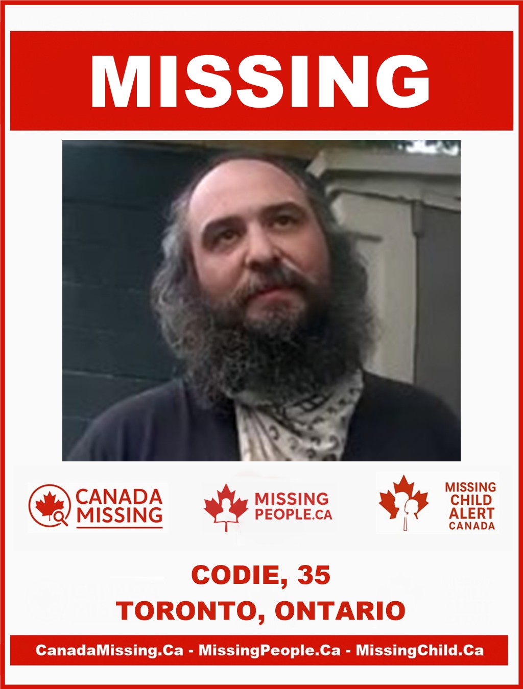 🚨 Missing Person in Toronto, Ontario – Codie, 35 – Last Seen October 18, 2025