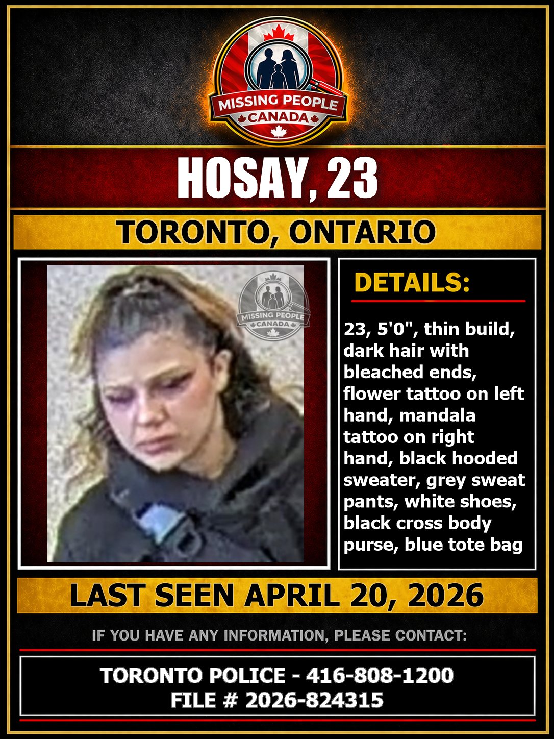 🚨 MISSING PERSON IN TORONTO, ONTARIO – HOSAY, 23 – LAST SEEN APRIL 20, 2026