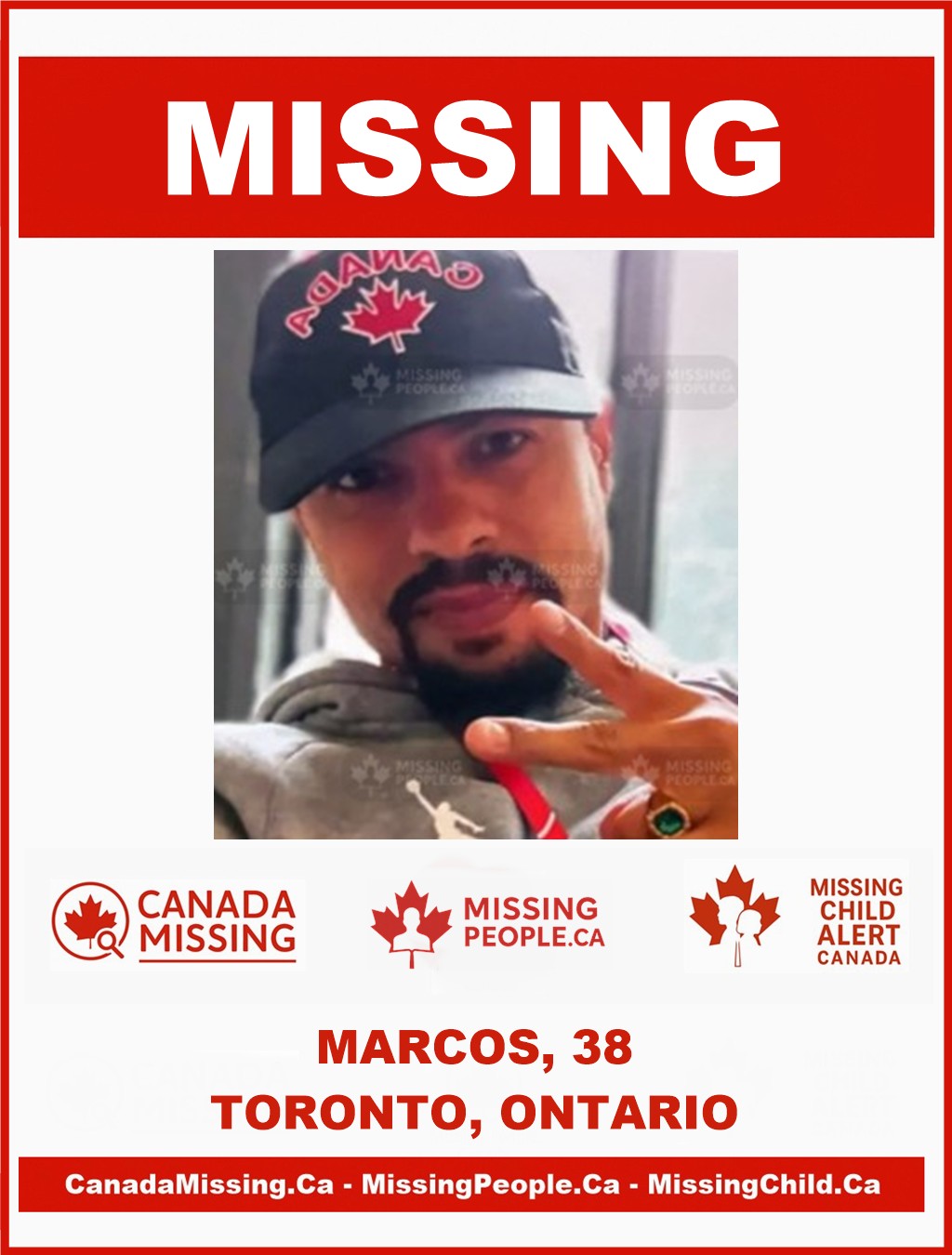 Marcos, 38, was last seen on Saturday, September 20, 2025, in the area of Trethewey Drive and Jane Street in Toronto, Ontario.