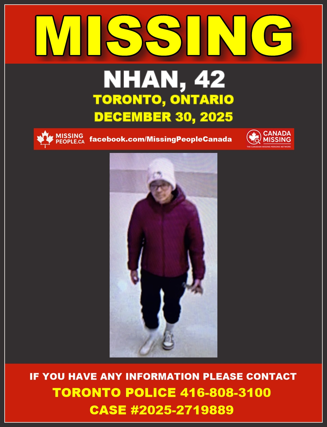 🚨 Missing person in Toronto, Ontario – Nhan, 42 – Last Seen December 30 2025